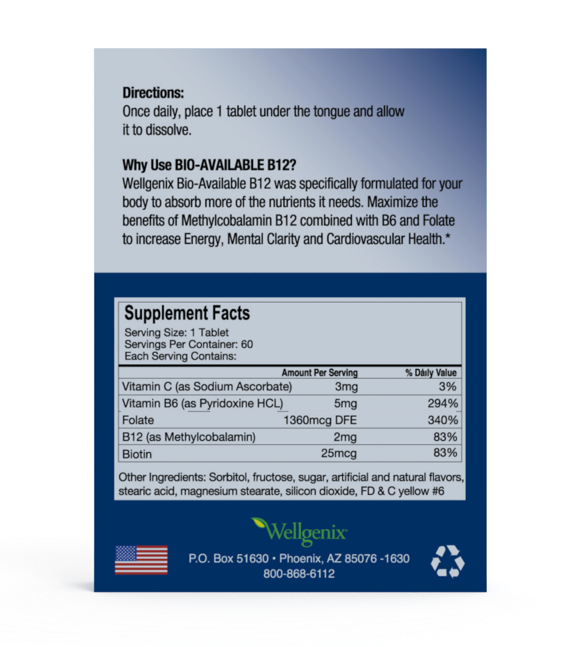 BioAvailable B12 Max provides 2000mcg of methylcobalamin B12 in a convenient fast-dissolve tablet designed for individuals who prefer a sublingual format. Each tablet includes B6, folate, vitamin C, and biotin, offering a clean and simple way to incorporate B-vitamins into your daily routine.