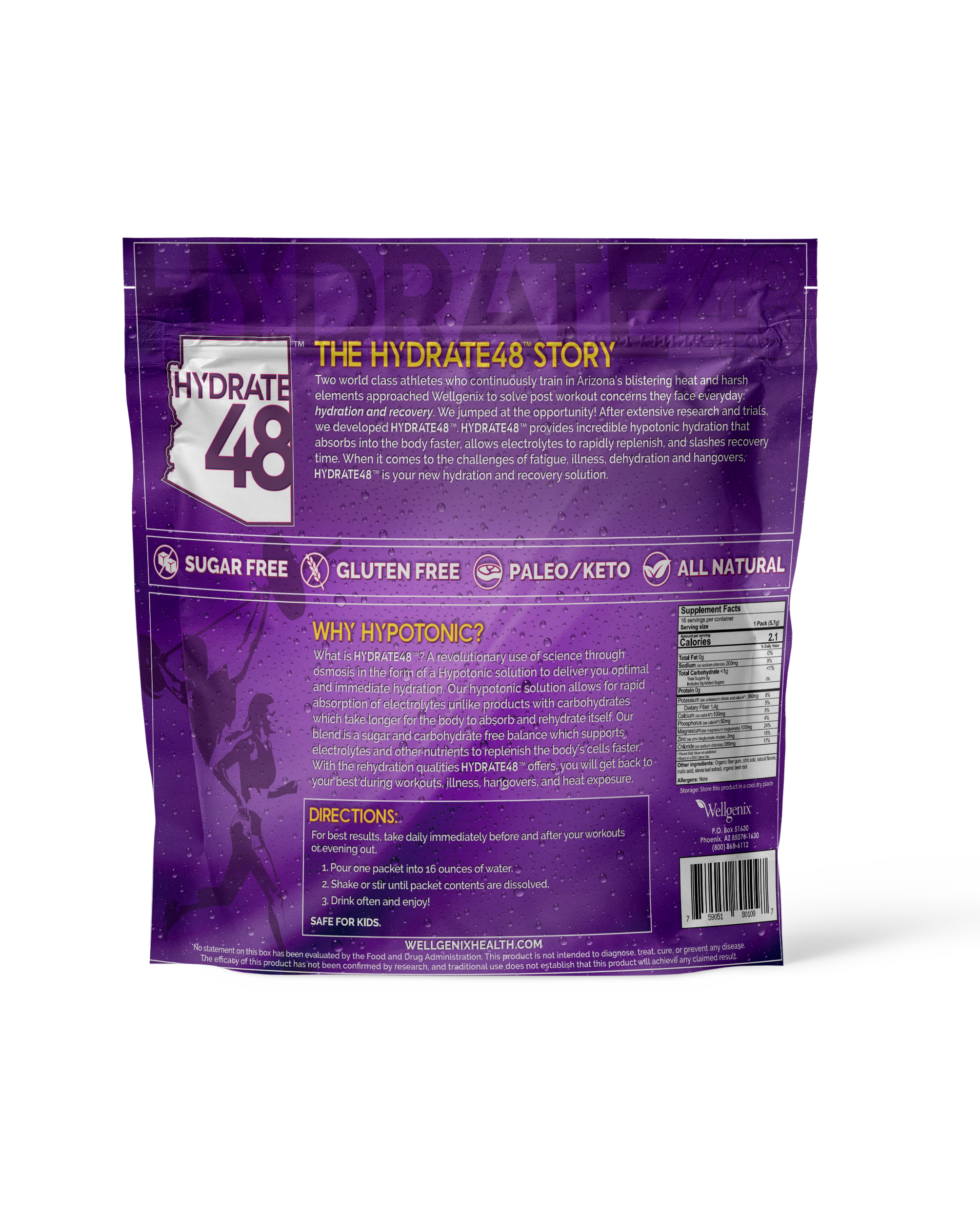 Hydrate48 is a fast acting hydration accelerator packed with the perfect balance of electrolytes to keep you energized and refreshed. This sugar-free, all natural formula is gluten-free, paleo, and keto-friendly making it the smart choice for workouts, recovery, travel, or daily hydration. Enjoy great taste with clean ingredients that work as hard as you do.