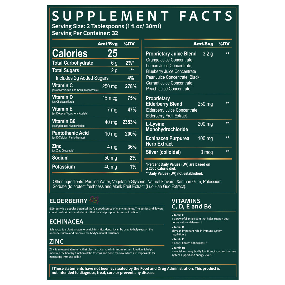 A daily liquid immune support blend crafted with vitamins, minerals, and botanical ingredients in a smooth raspberry lemonade flavor, designed to fit naturally into your everyday wellness routine.