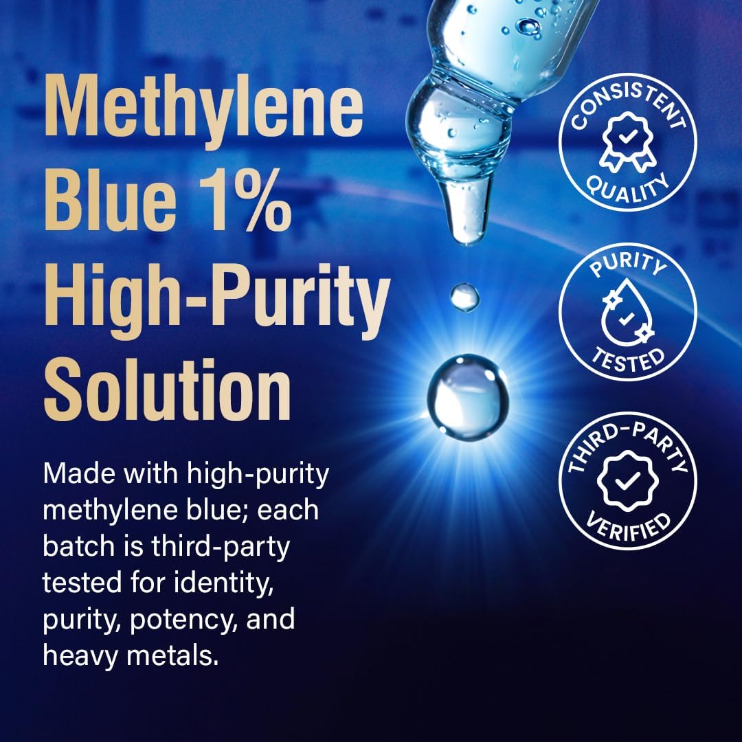 This USP-grade liquid methylene blue is crafted for users who want a clean, consistent formula in an easy-to-measure liquid format. Each bottle is produced under strict quality standards to support stability, purity, and accurate daily use.