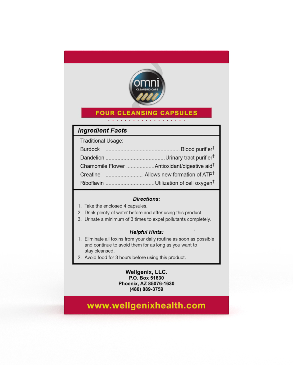 Omni Cleansing Capsules 4ct are designed for individuals looking for a short-term cleansing protocol using a compact, easy-to-carry capsule format. Each serving contains traditional herbal ingredients that have been used to support natural elimination pathways, hydration routines, and general wellness.