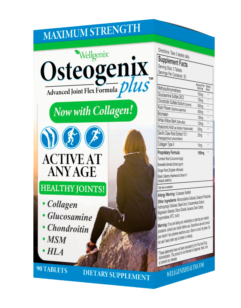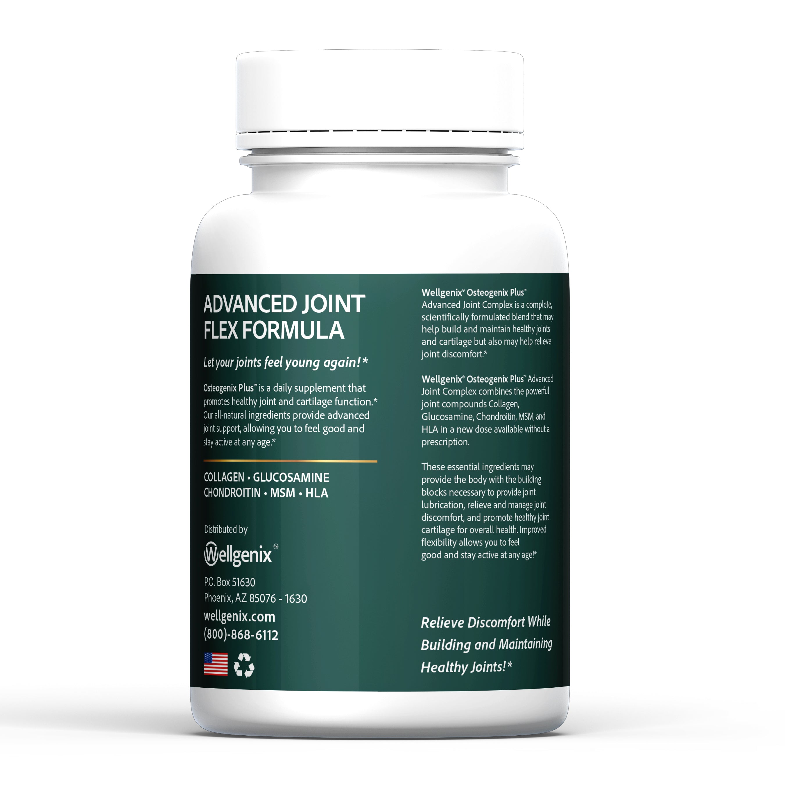 Osteogenix Plus is a daily capsule featuring a combination of collagen, glucosamine, chondroitin, MSM, and hyaluronic acid—ingredients commonly used in modern joint-wellness routines. This comprehensive formula offers a simple way for adults to include joint-focused compounds in their daily habits, in an easy-to-take capsule format tailored to fit a variety of activity levels and lifestyles.