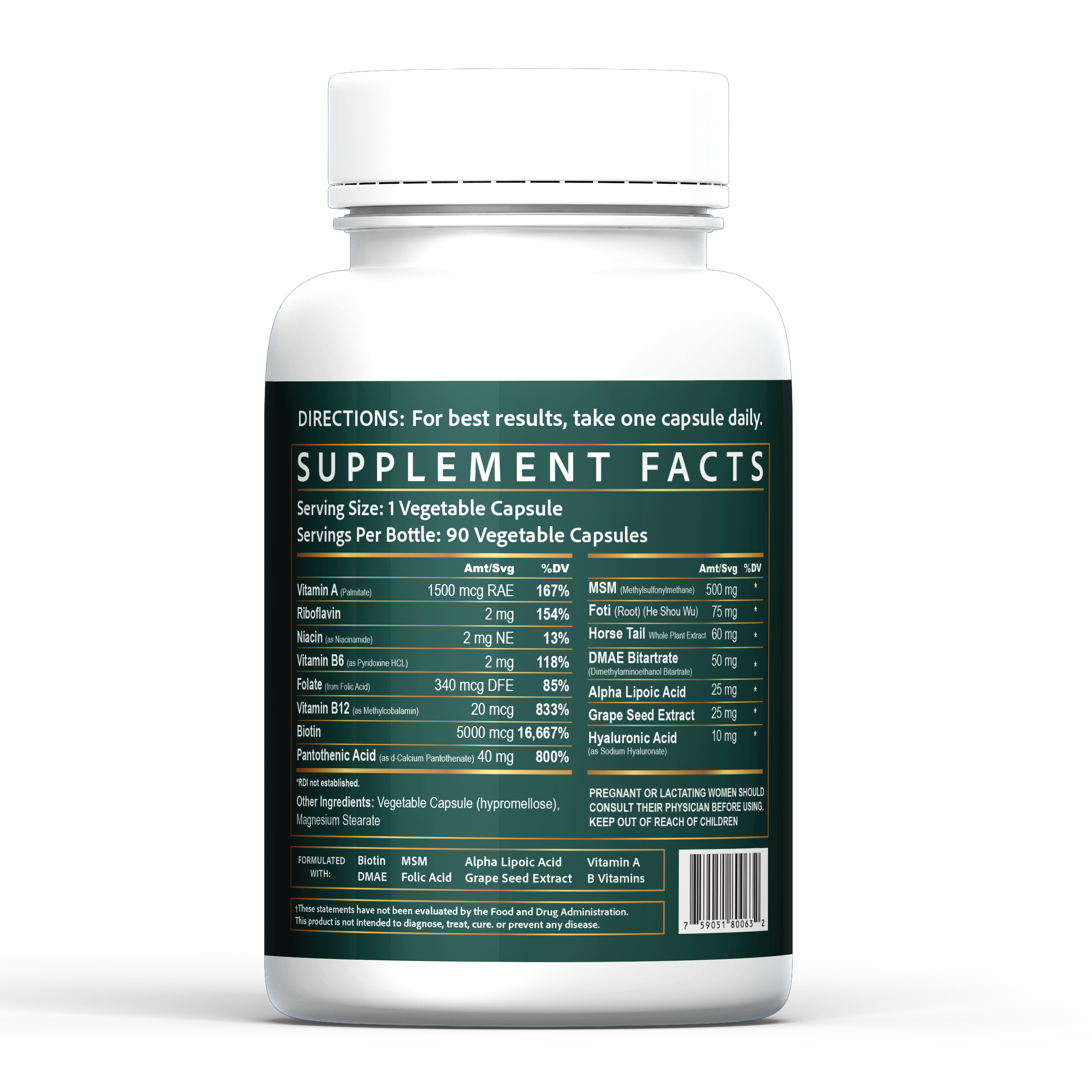A high strength 5000mcg beauty support formula in vegetable tablets, designed to help support fuller looking hair, stronger looking nails, and healthy-looking skin as part of your daily routine.