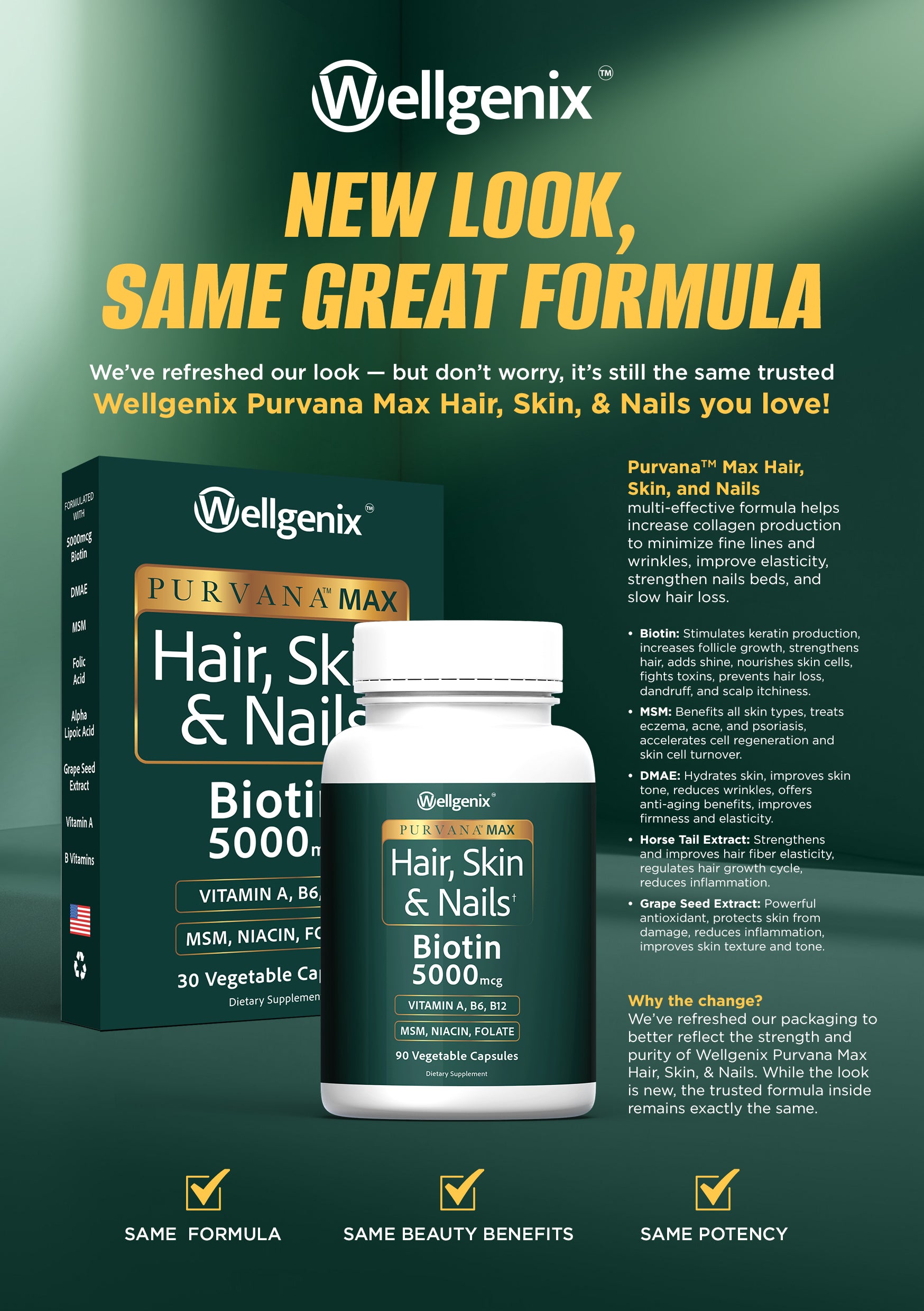 For more than 30 years, Wellgenix has focused on developing wellness and beauty-support formulas produced under established supplement quality standards. Purvana Hair, Skin & Nails #3 is manufactured in facilities that follow GMP practices and routine quality checks to support consistency and transparency.